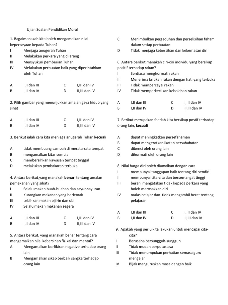 Berikut merupakan beberapa contoh soalan yang. Soalan objektif pendidikan moral tahun 6. Berikut dikongsikan contoh set soalan Peperiksaan Akhir Tahun bagi mata pelajaran tahun 4.